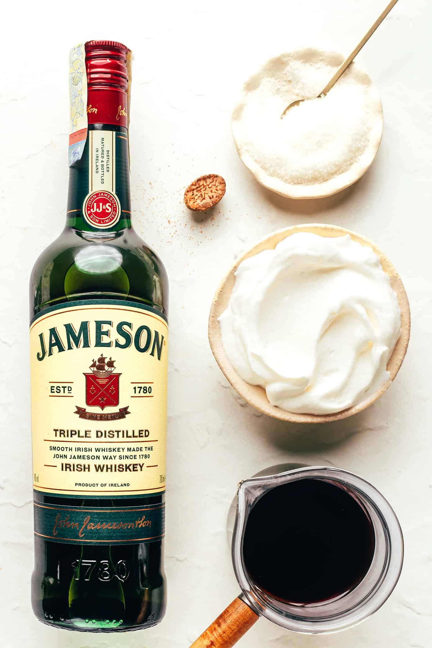 - Whipped cream:ย Whipped cream is layered on top of the drink, helping to balance the robust flavors of the coffee and whiskey with a luxurious bit of creamy flavor. It’s so worth it to spend 5 minutes making a fresh batch of homemade whipped cream from scratch!