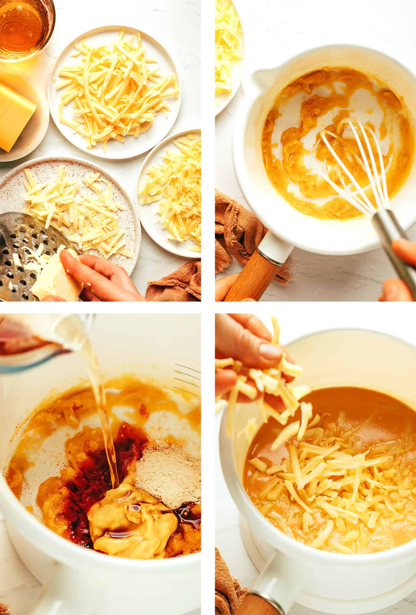 - Don’t overheat the cheese. Be sure to turn the heat to low when it comes time to add the cheese to the recipe so that it doesn’t overheat and seize up. I find it’s best to add a handful at a time, then stir until it melts, and add another handful.