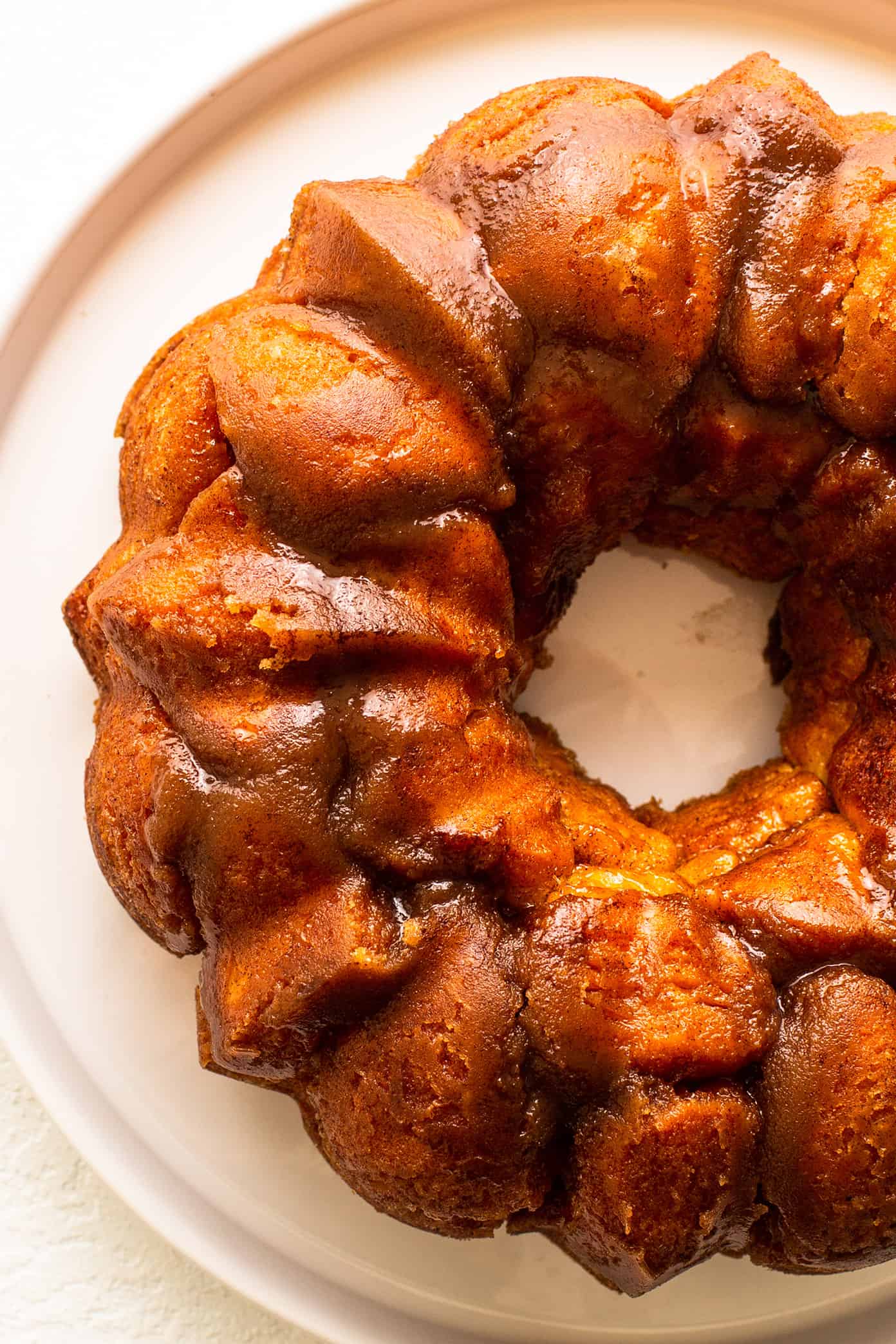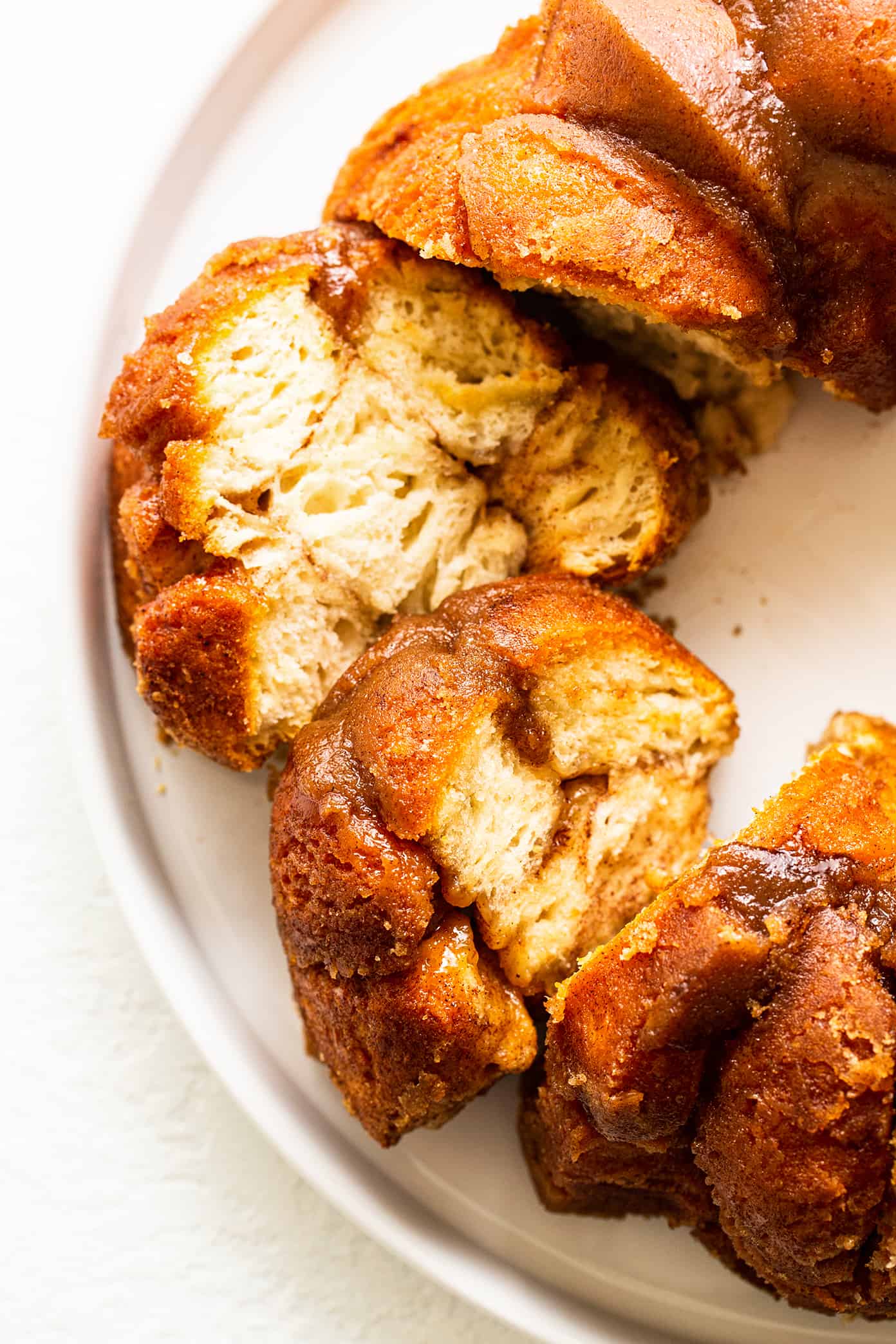 - Use a bundt pan.ย There’s a reason that monkey bread is traditionally made in bundt or tube pans. The design of the pan allows the biscuits to cook evenly (avoiding an undercooked center) and ensures extra gooey, caramelized eges.