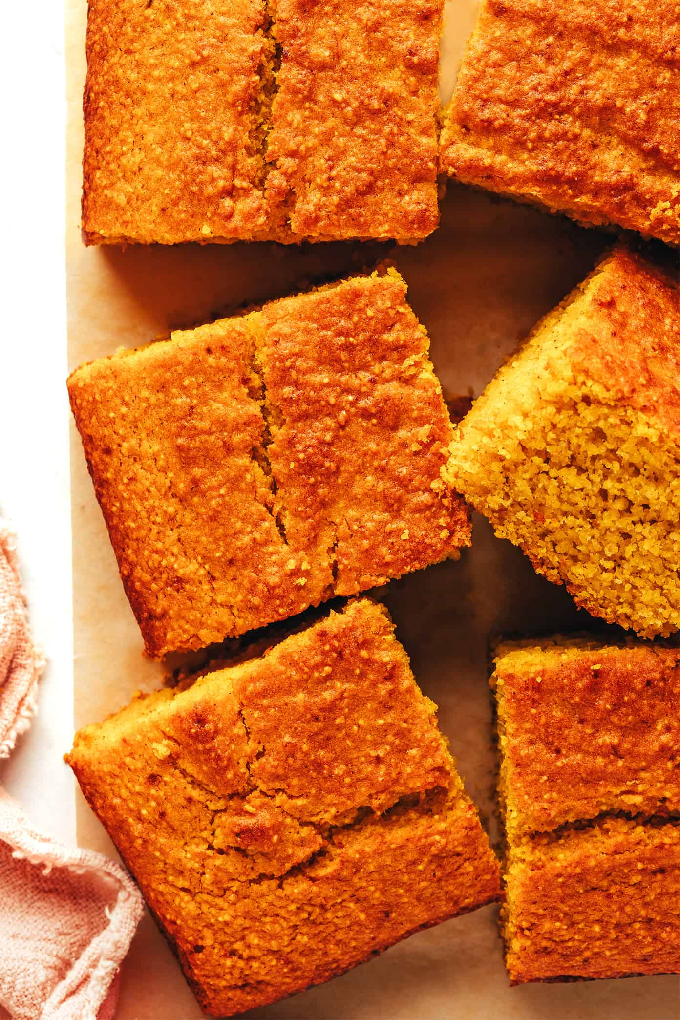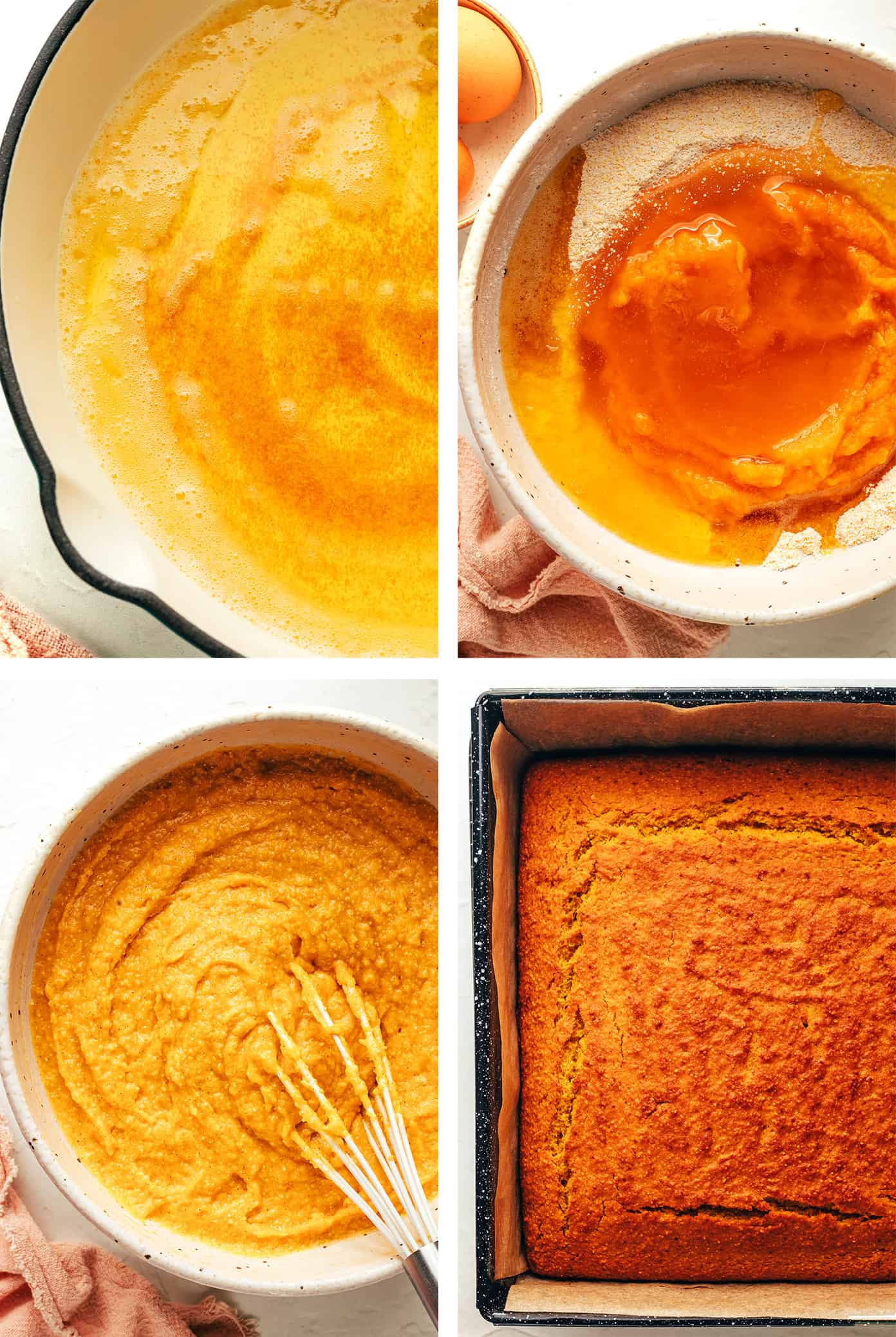 - Pumpkin purรฉe:ย In addition to helping keep the cornbread nice and moist, pumpkin purรฉe adds a delicious earthy sweetness to the cornbread that beautifully complements the cornmeal flavor.
