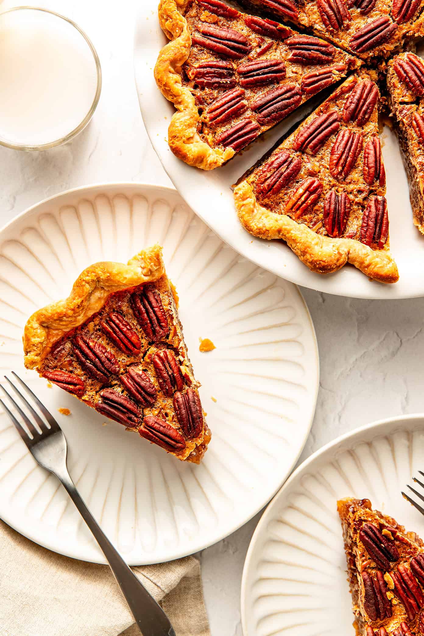 Corn syrup (which is different than high fructose corn syrup) is what gives classic pecan pie its glossy, custardy texture. Feel free to try my maple pecan pie if you’d prefer a naturally sweetened version.