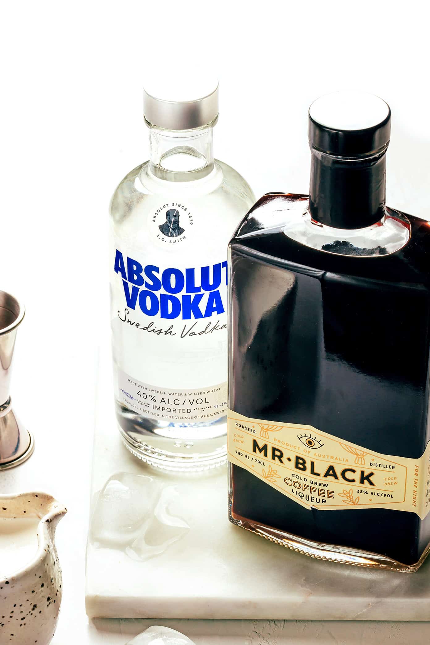 - Coffee liqueur:ย Kahlรบa is the most popular coffee liqueur used for White Russians, which adds a rich, slightly-sweet, vanilla-caramel coffee flavor that pairs perfectly with the cream. Other coffee liqueur options could include Mr. Black or Tia Maria.