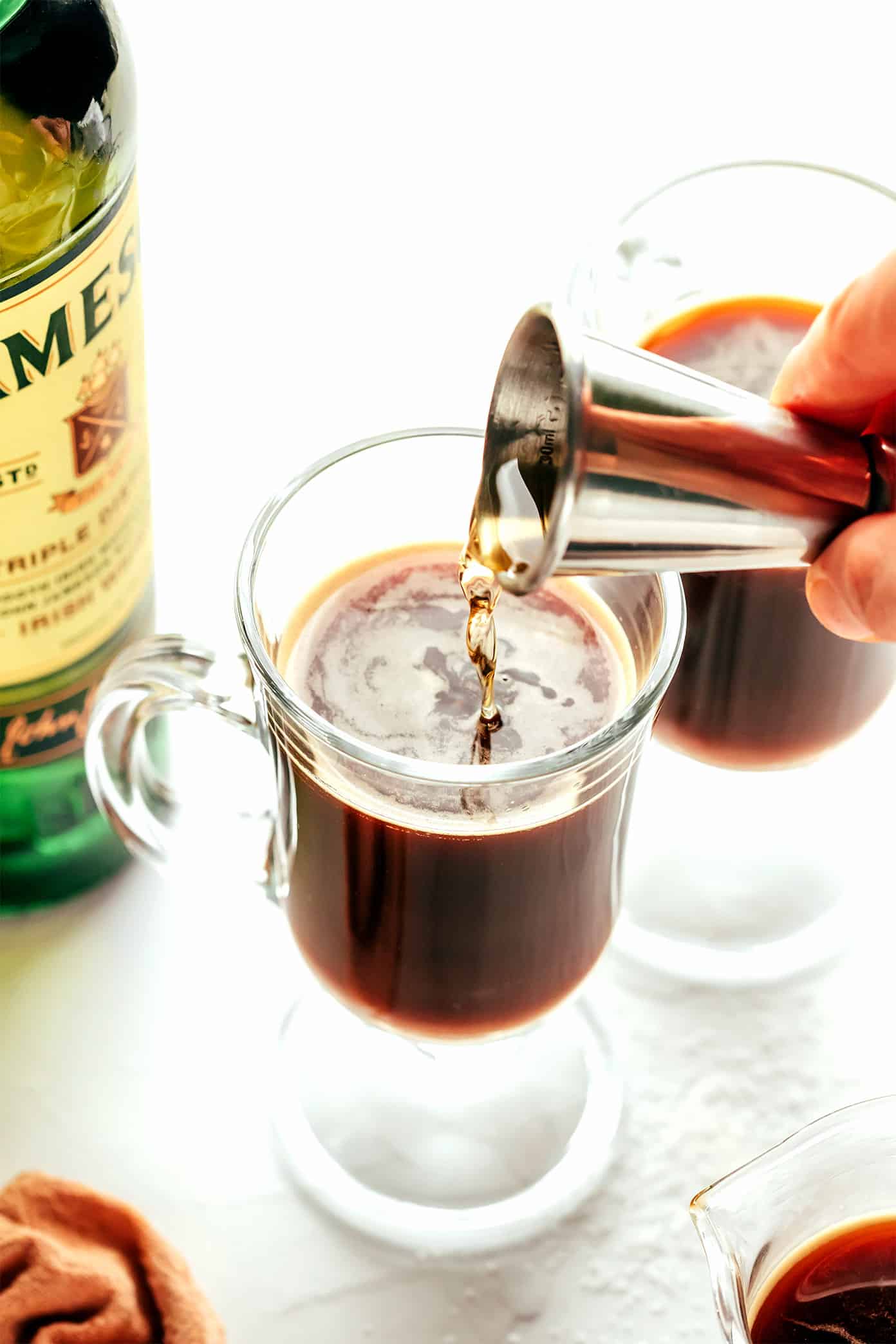 - Preheat your glass.ย I also love to preheat our glasses when making Irish coffee so that the cocktail stays nice and warm. Simply fill the glasses with hot water while you are brewing the coffee, then pour it out just before adding the cocktail ingredients.