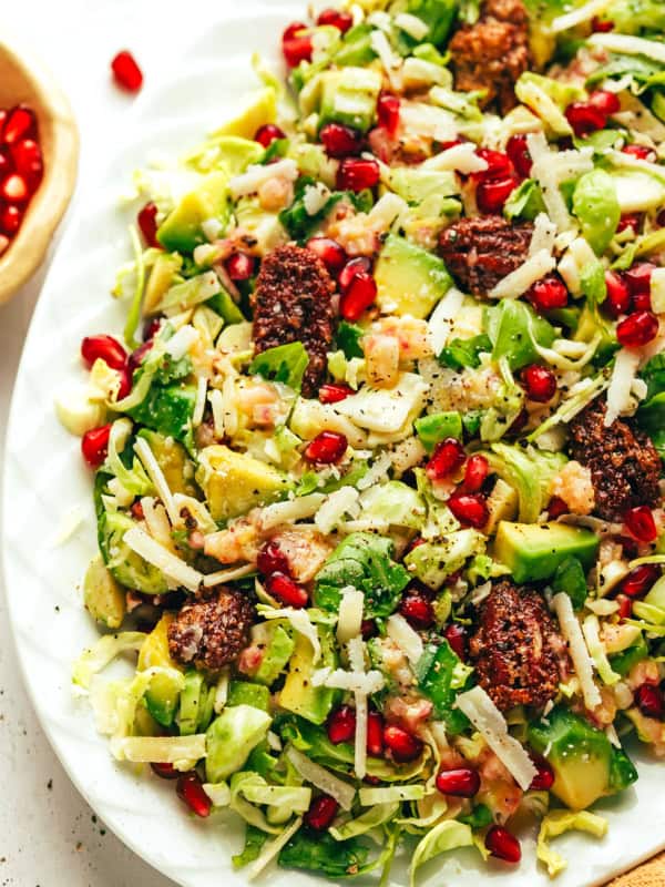 Brussels Sprouts Arugula Salad with Pomegranate and Parmesan