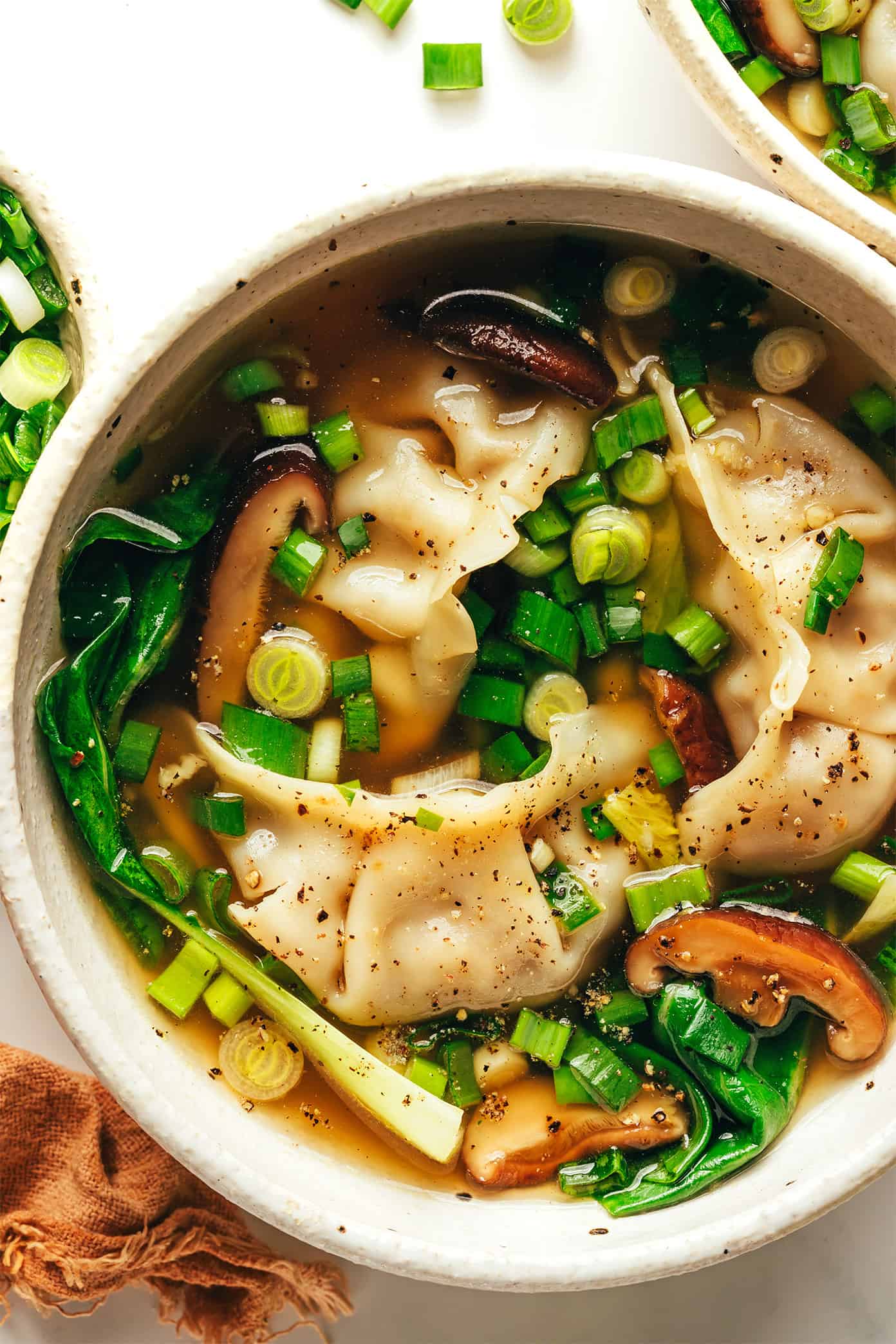 This cozy potsticker soup recipe comes together in just 25 minutes and is easy to customize with your favorite dumplings and veggies.