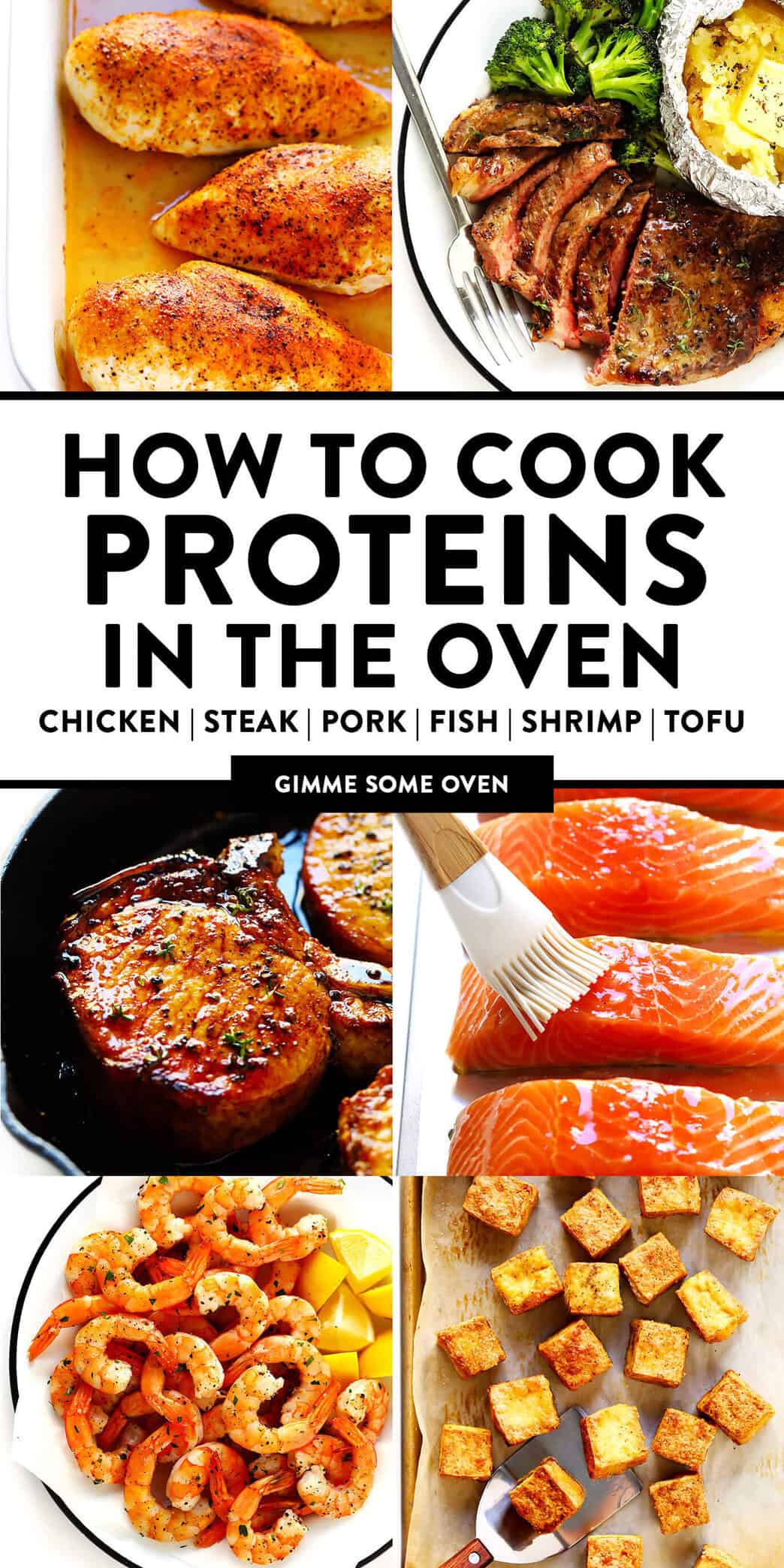 Everything you need to know about how to cook chicken, steak, pork, shrimp, salmon, whole fish or tofu in the oven.