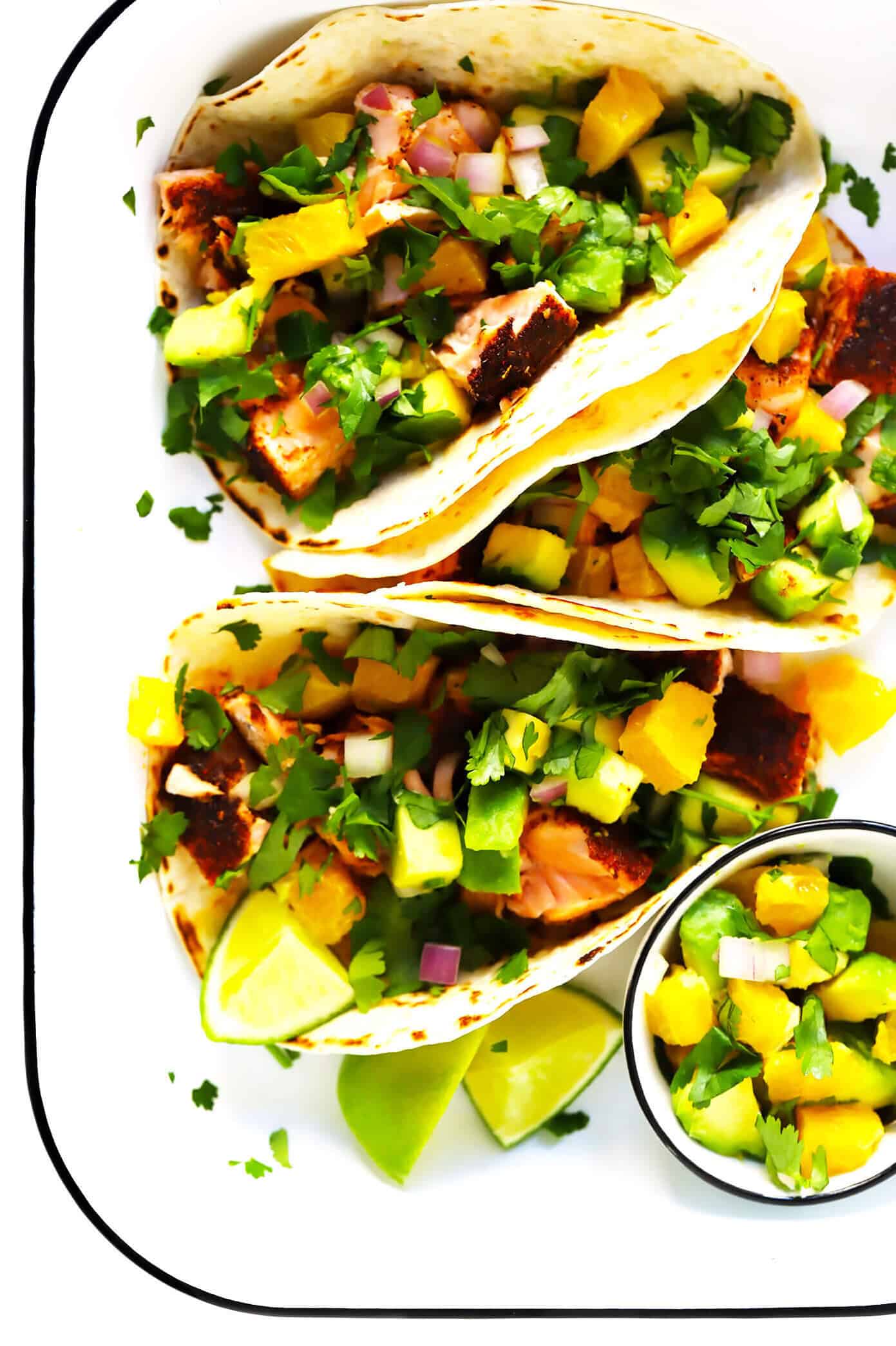 Super-Simple Salmon Tacos:ย This was my very first recipe shared on the blog in 2019 and continued to be one of my faves all year long. Flaky salmon is *perfectly* cooked and made with the most delicious chile-cumin rub. A quick and juicy avocado-citrus salsa negates the need for any extra sauce. And altogether, they form the mostย flavorful, light and healthy tacos. Bonus — they can be made in less than 30 minutes too!
