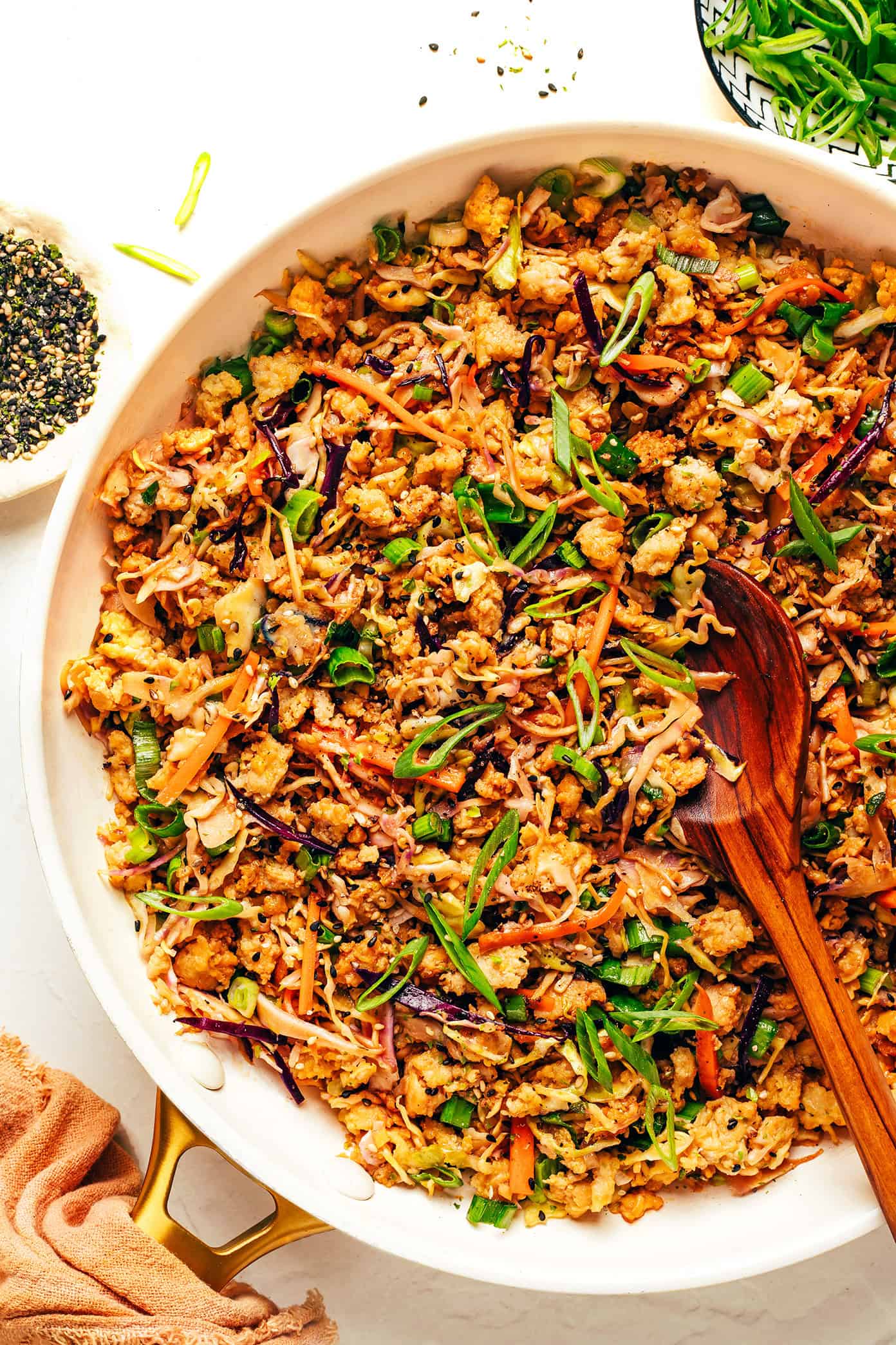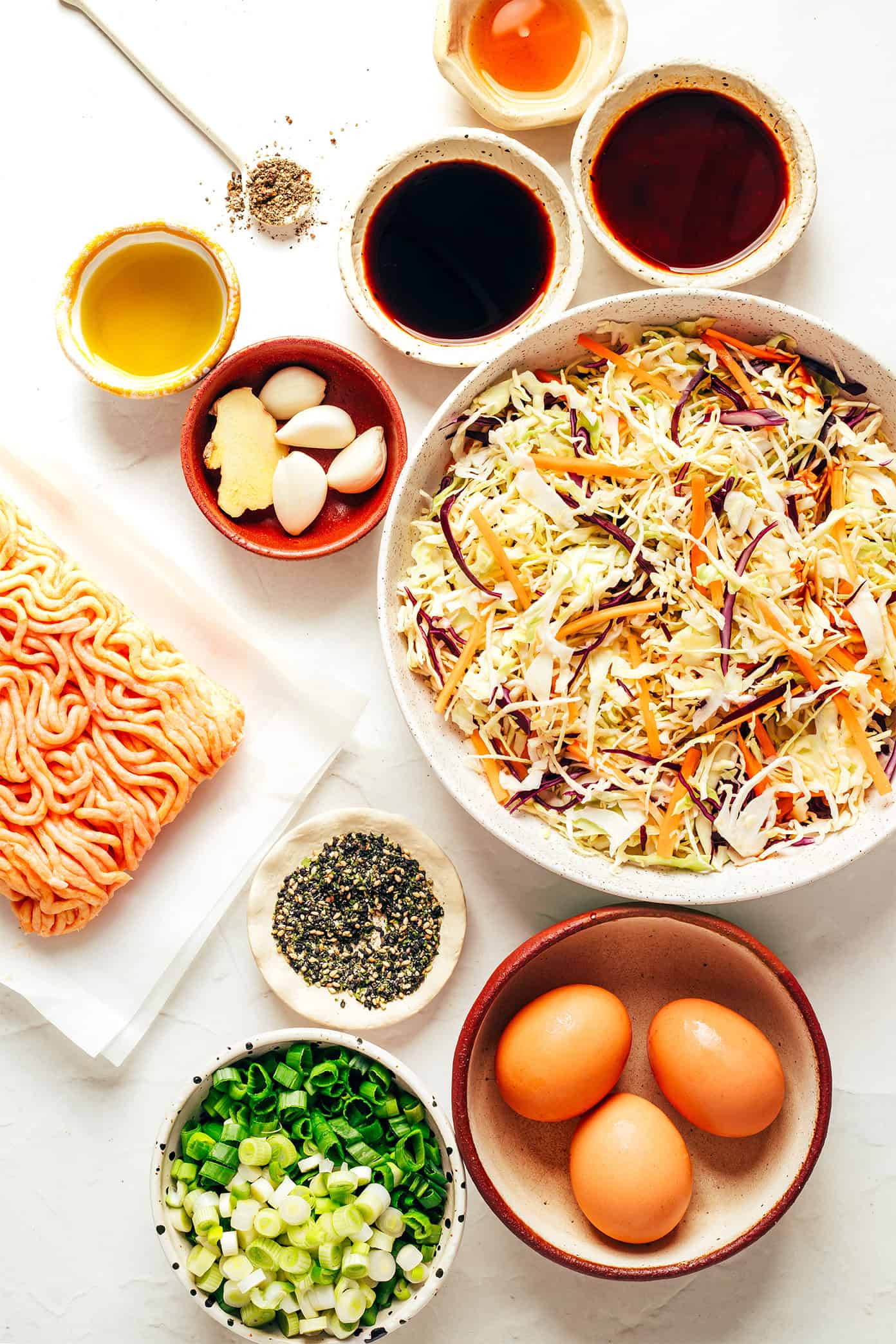 Here are a few quick notes about the ingredients you’ll need to make this egg roll in a bowl recipe:
