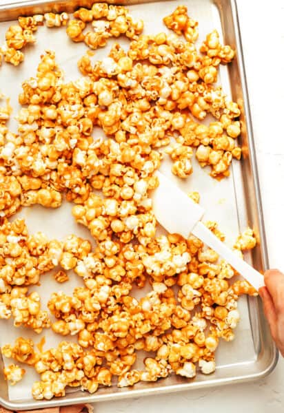 - Let it cool completely. The caramel corn crisps up as it cools, so resist the urge to snack too early (or at least save some for later).