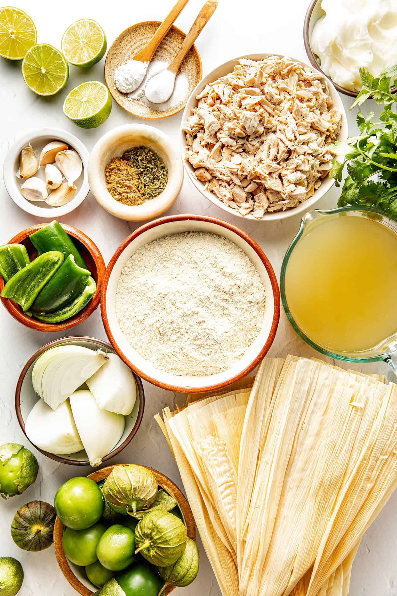 Here are a few quick notes about the ingredients you will need to make these green chicken tamales: